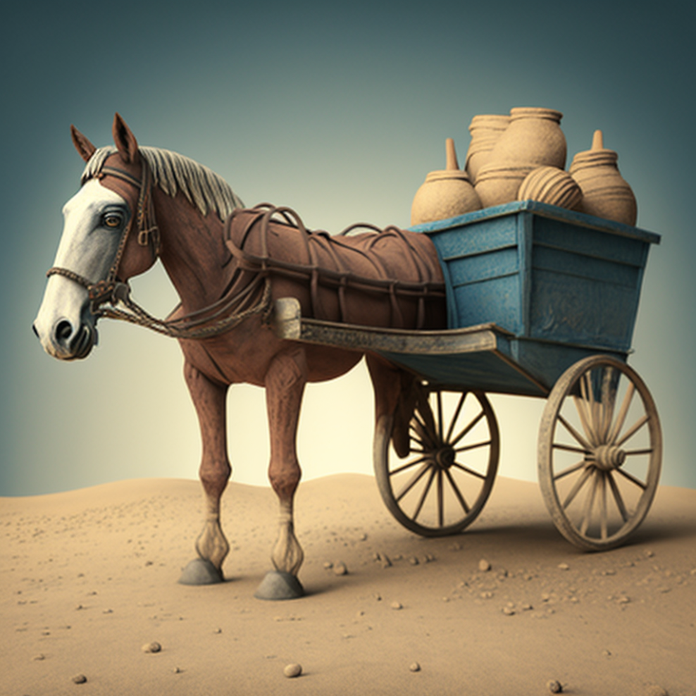 우선, 머리속으로 한번 그림을 그려봅시다. 일반적으로 수레를 끄는 말을 연상해보면, 아래의 그림과 같이 말이 앞에 있고 그 뒤에 수레나 마차 등이 오는게 맞는 상황일 겁니다. 그래야 수월하게 짐이나 이동수단으로 활용할 수 있테니깐요